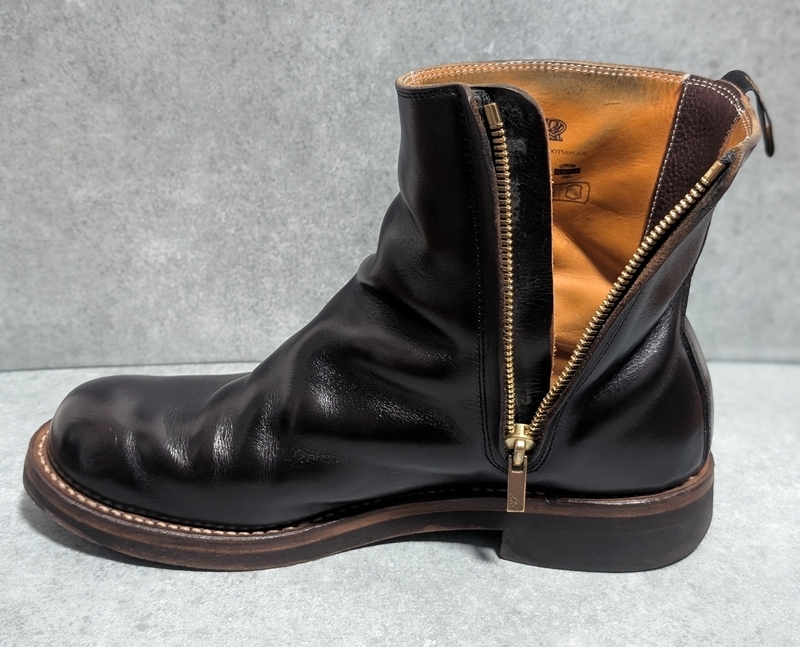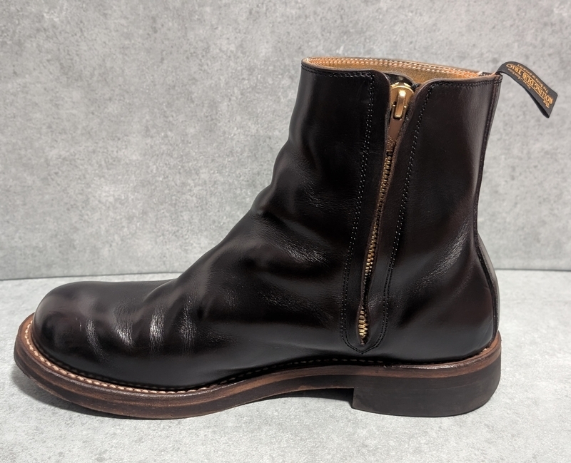 一枚革でサイドジップというデザインは、どこかモードな雰囲気が漂いますが